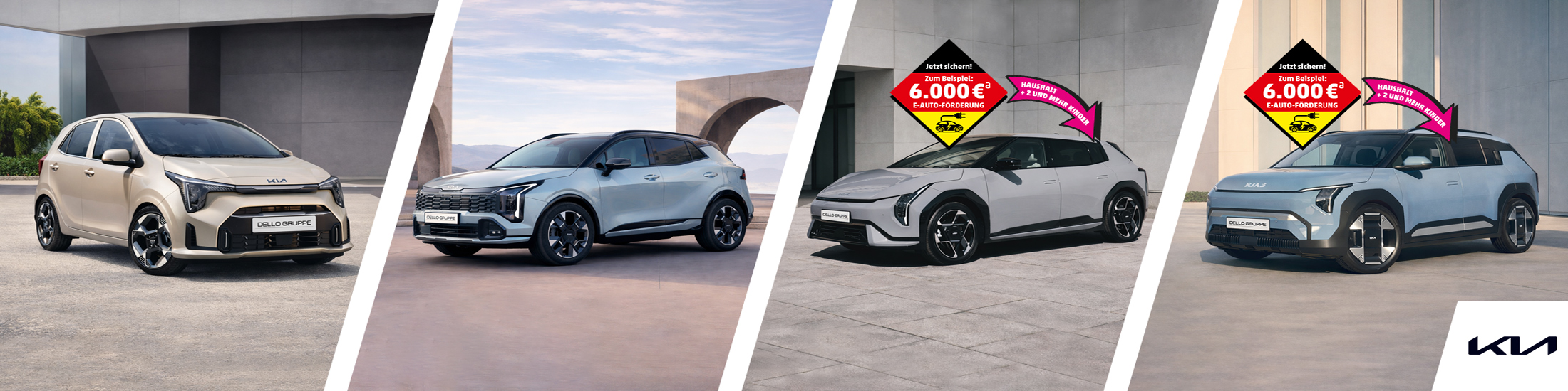 Entdecken Sie unsere aktuellen Kia Leasingangebote: den Kia Picanto als sofort verfügbares Stadtauto, den Kia Sportage als vielseitigen SUV sowie den neuen Kia EV4 und den Kia EV3 als moderne Elektrofahrzeuge. Alle Modelle jetzt ohne Anzahlung leasen.