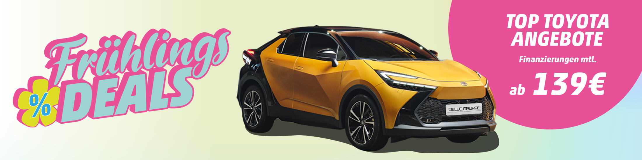 Jetzt ist der ideale Zeitpunkt für den Einstieg in eine moderne und effiziente Mobilität. Die DELLO GRUPPE bietet Ihnen eine vielseitige Auswahl an Toyota Modellen – zuverlässig, alltagstauglich und mit attraktiven Finanzierungskonditionen.
